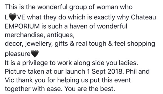 Le Chateau EMPORIUM was launched on September 1st 2018 to offer discerning women a unique shopping experience. The EMPORIUM offers a wonderful haven of antiques, decor, jewellery, gifts and fashion with something for every taste and occasion.